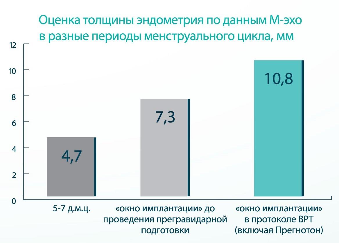 Прегнотон помогает нормализовать толщину эндометрия у женщин с тонким эндометрием.